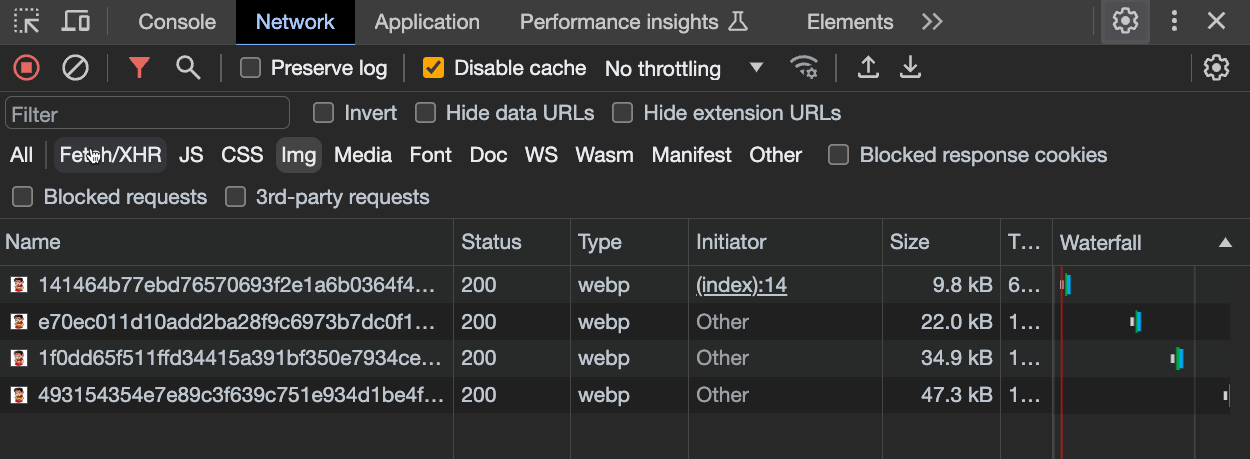 • The image is converted in several webp images, one for each breakpoint (200px, 400px, 600px, 800px, 1200px)